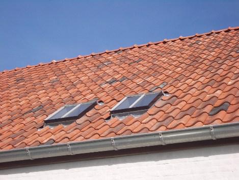 Tuile en terre cuite fortement ondulée (type Flamande) avec simple emboîtement et simple recouvrement.